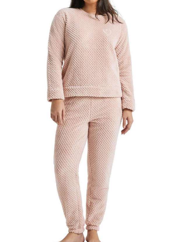 Características: Pijama Feminino Longo Confeccionado em malha fleece poliéster Possui manga longa e calça Decote redondo Bordado de coração na parte da frente Toque super macio Maximo conforto e texturizado Composição: 100% Poliéster