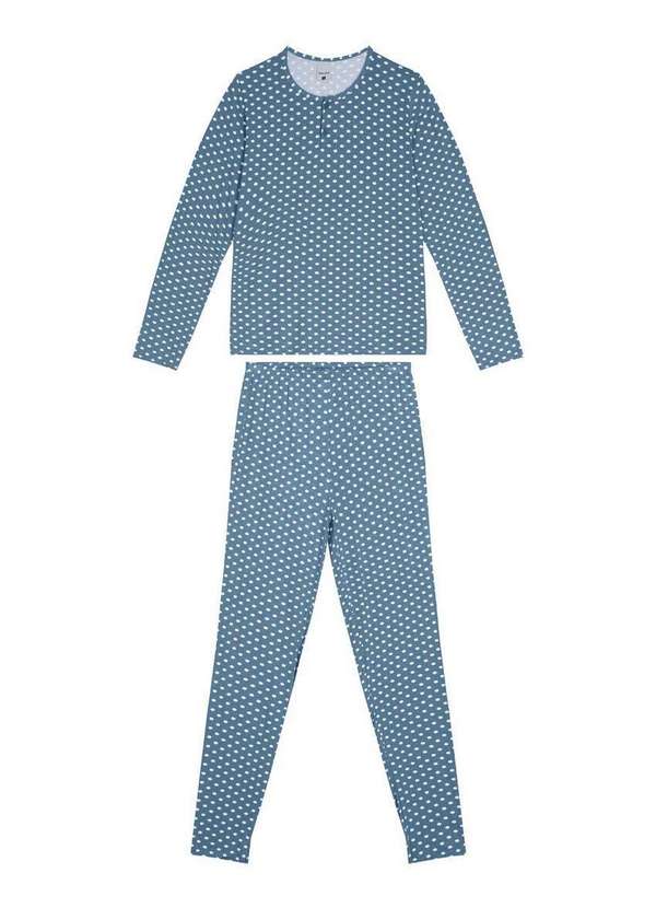 Malwee - Pijama Feminino Longo Malwee 1000117640 Dh30d-Azul