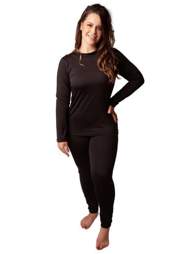 2. Cia da Malha - Pijama Feminino Masculino Térmico Adulto Inverno Preto