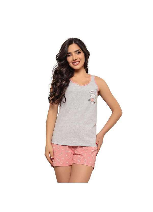Luna Cuore - Pijama Feminino Short Doll Regata Algodao Mae Gata Luna Cuore Rosa