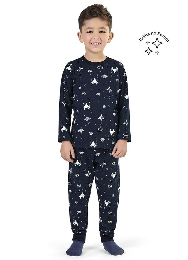 Elian - Pijama Infantil Brilha no Escuro Espacial Azul