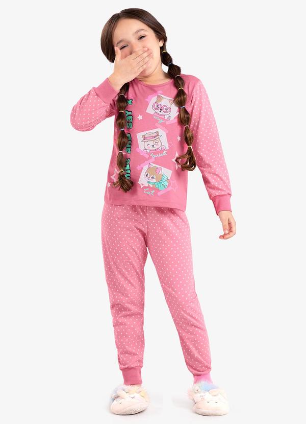 Rovi Kids - Pijama Infantil Feminino em Meia Malha Rosa