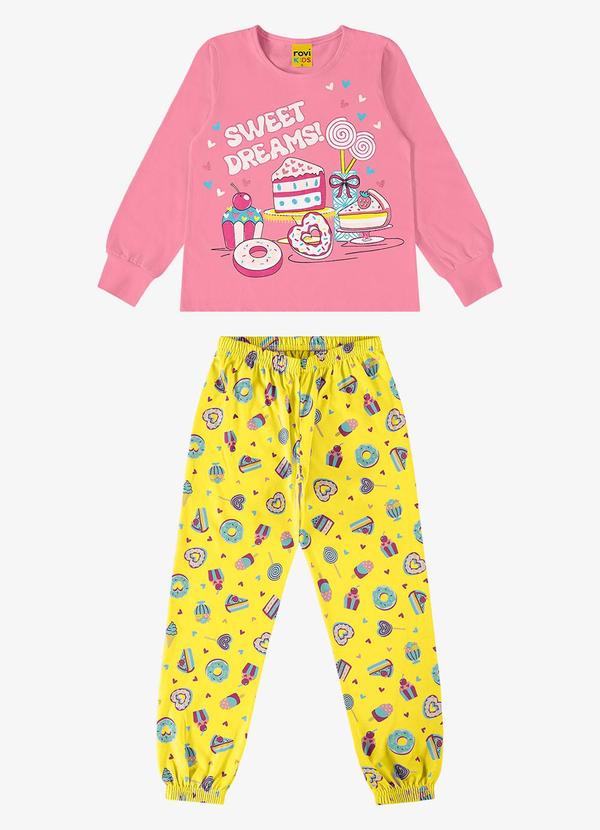 Rovi Kids - Pijama Infantil Feminino em Meia Malha Rosa