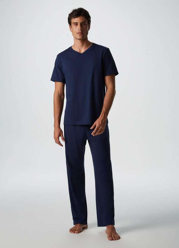 Hering - Pijama Longo Masculino em Malha Flame Azul