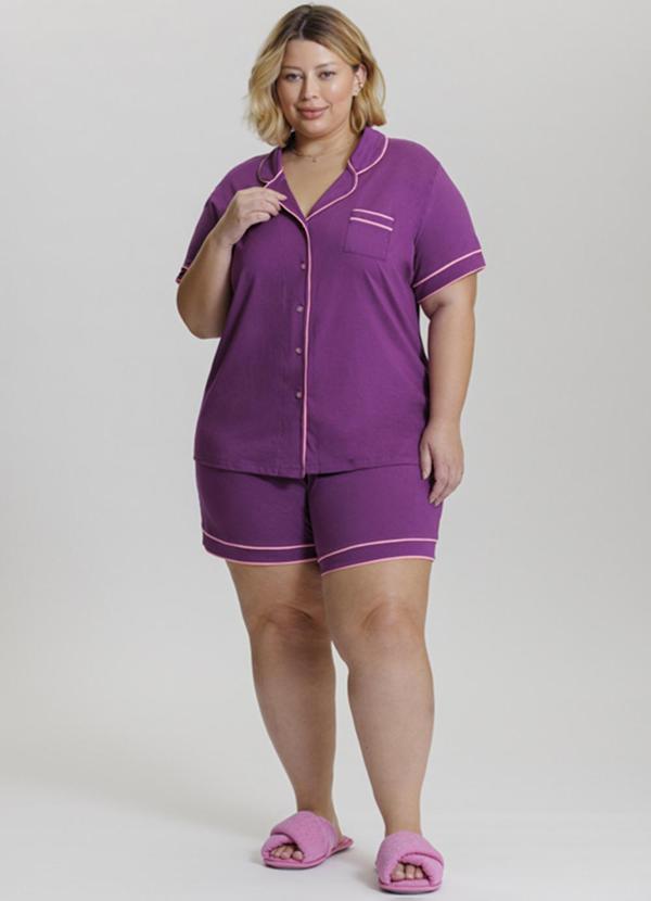 Mensageiro do Sonhos - Pijama Manga Curta Americano Plus Size Roxo