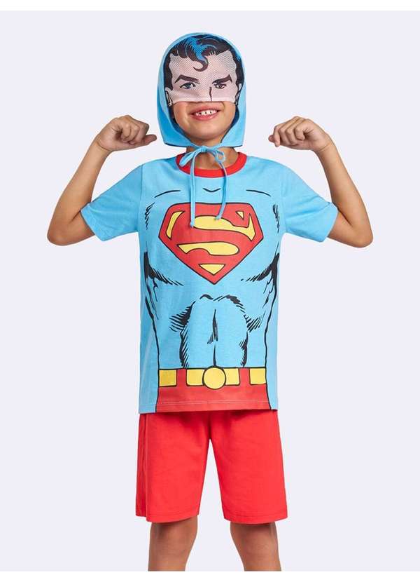 Veggi - Pijama Manga Curta com Capuz Superman Azul