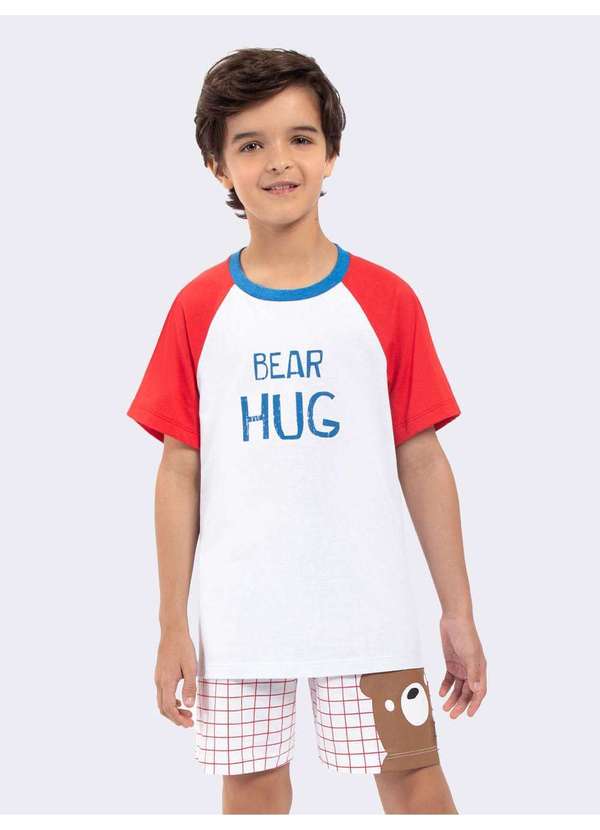 Veggi - Pijama Manga Curta Masculino Infantil Bear Hug Branco