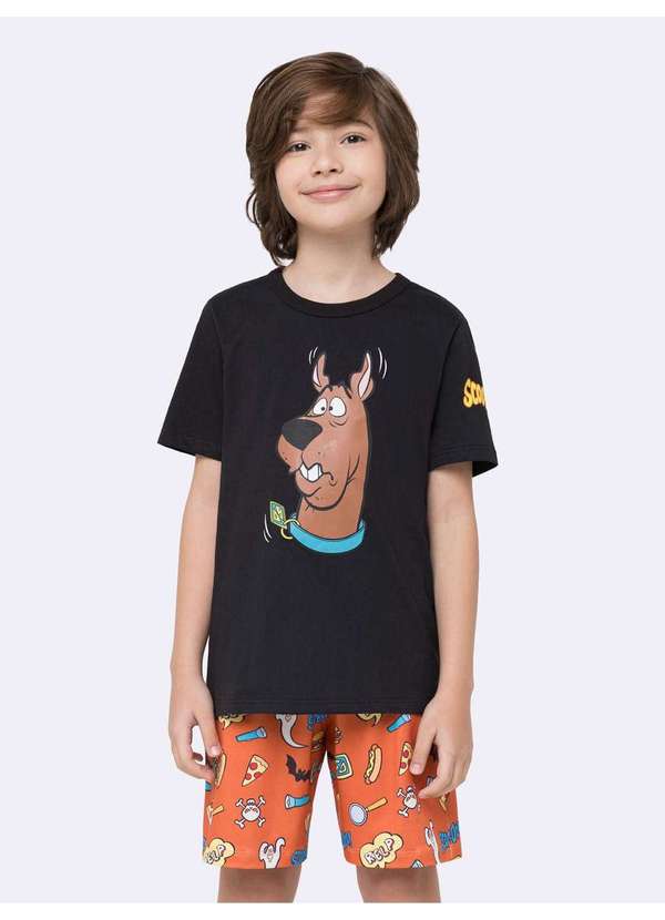 Veggi - Pijama Manga Curta Masculino Infantil Scooby-Doo com Bermuda Preto