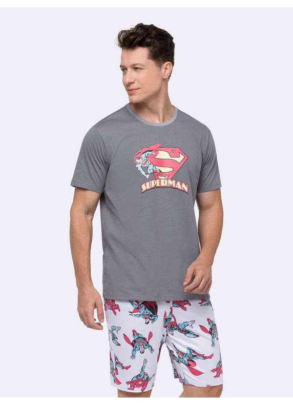 Veggi - Pijama Manga Curta Masculino Superman Cinza