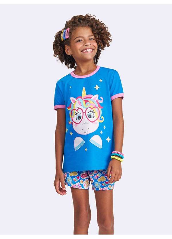 Veggi - Pijama Manga Curta Unicórnio Magic Stickers Azul
