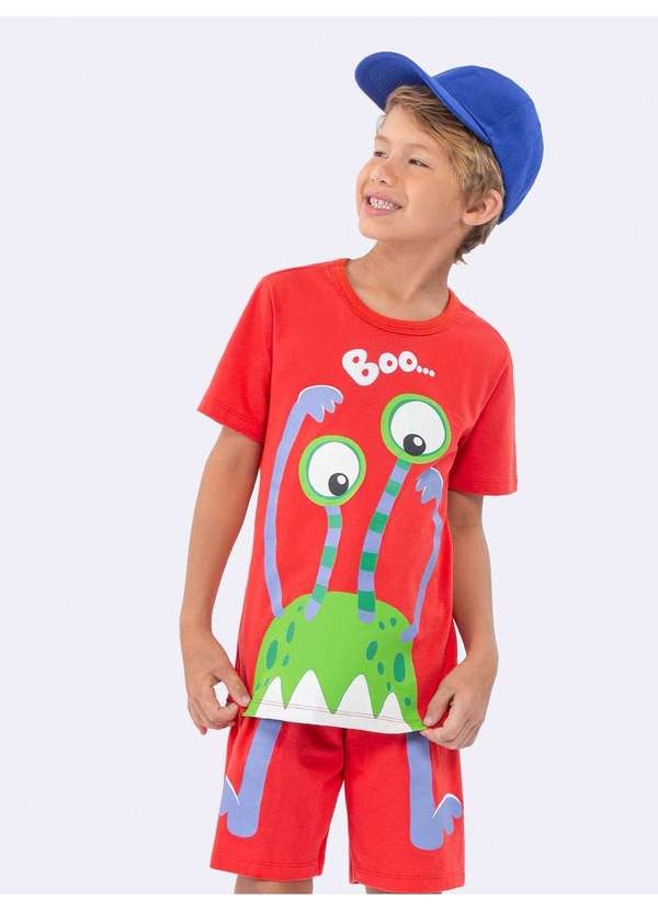 Este conjunto encantador é perfeito para meninos e meninas que adoram um toque de magia em suas roupas de dormir. É todo confeccionado em malha 100% algodão, garantindo conforto e durabilidade. O destaque fica por conta da estampa que brilha no escuro! Basta expor o pijama à luz por alguns segundos antes de apagar as luzes, e o monstro verde com os olhos grandes e a palavra ?Boo?? ganhará vida na escuridão. Uma opção divertida e aconchegante para as noites de sono. PRODUTO BRILHA NO ESCURO