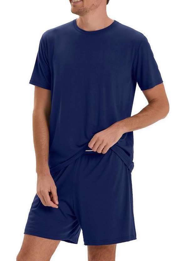 Características: Pijama Masculino Curto Ideal para quem busca conforto sem abrir mão do estilo Confeccionado em malha visco comfy, um tecido leve, macio e com toque suave que proporciona bem estar durante toda a noite A camiseta de manga curta vem em um elegante tom azul marinho e possui modelagem tradicional, oferecendo caimento confortável e moderno. Seu visual clean permite o uso não só para dormir, mas também para relaxar em casa com praticidade A bermuda também em malha visco comfy, mantém a mesma paleta de cores com um visual harmônico e discreto O destaque fica por conta do cós elástico, que traz um toque de estilo com sua listra off white central sobre o fundo marinho, um detalhe sutil que acrescenta charme ao conjunto Um pijama pensado para acompanhar suas noites com suavidade, liberdade de movimento e um visual sofisticado na medida certa Composição: 96% Viscose e 04% Elastano