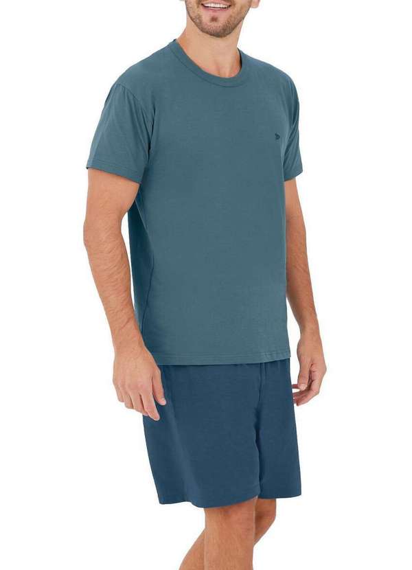 Características: Pijama masculino curto Blusa manga curta com logo da marca em bordado aplicado Gola redonda Bermuda com cintura em elástico macio Confeccionado em meia malha de algodão Composição: 100% Algodão