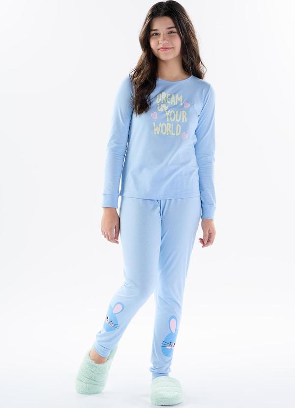 Pulla Bulla - Pijama Meia Malha Ramada Azul