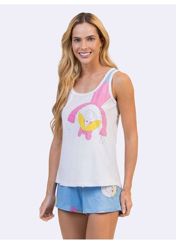 Veggi - Pijama Regata Bia Faces Azul Branco