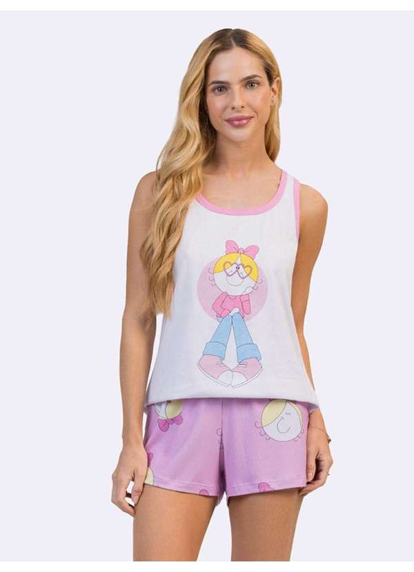 Veggi - Pijama Regata Bia Faces Rosa Branco