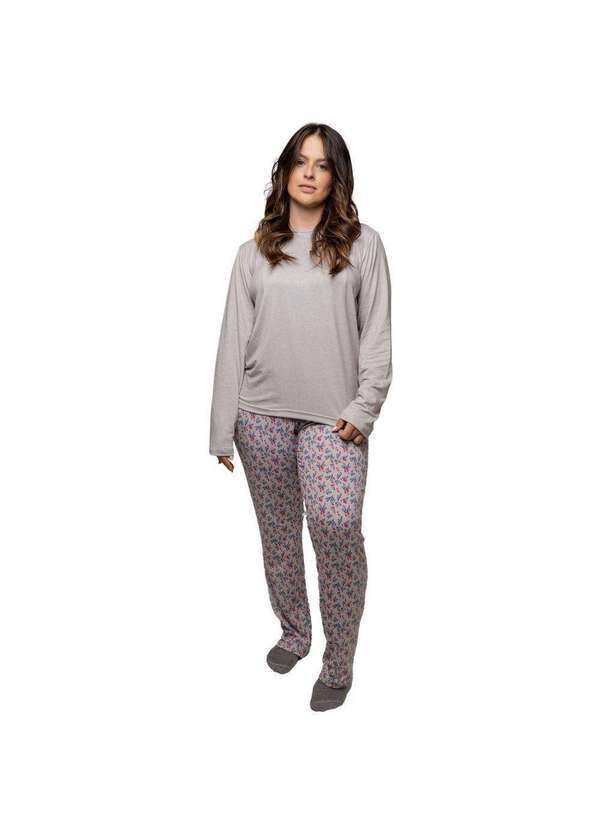 Cia da Malha - Pijama Suede Estampado Feminino Adulto Cinza