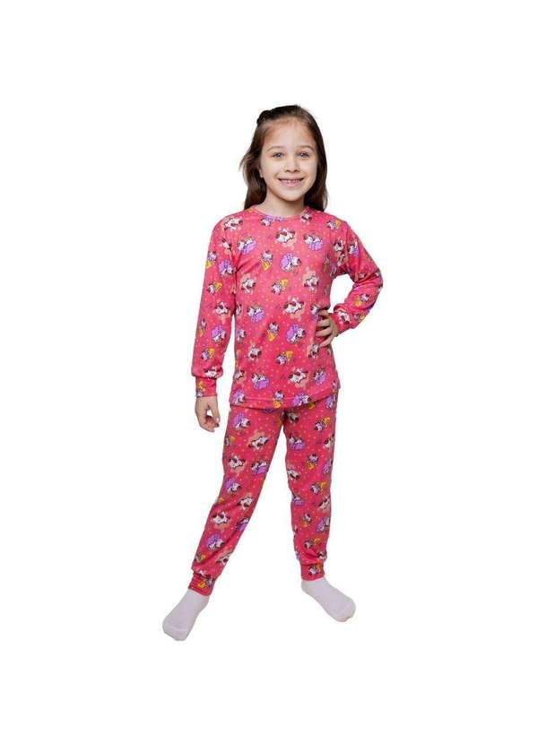 Cia da Malha - Pijama Suede Estampado Feminino Infantil Rosa