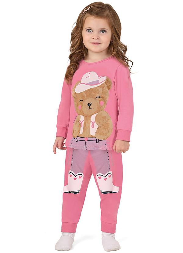 Malwee Kids - Pijama Ursinho Country Brilha no Escuro Rosa
