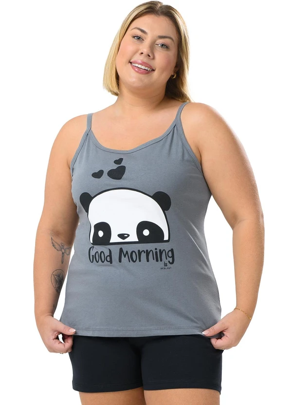 Be Blast - Pijama Verão Alcinha Plus Size Panda Cinza