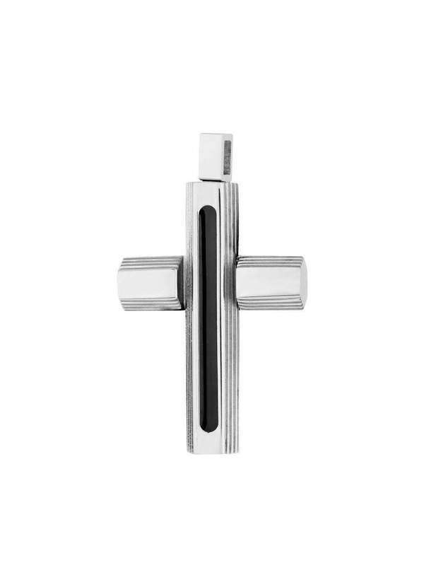 Convex - Pingente Aço Cruz Trabalhada Resina 38x22mm Prata