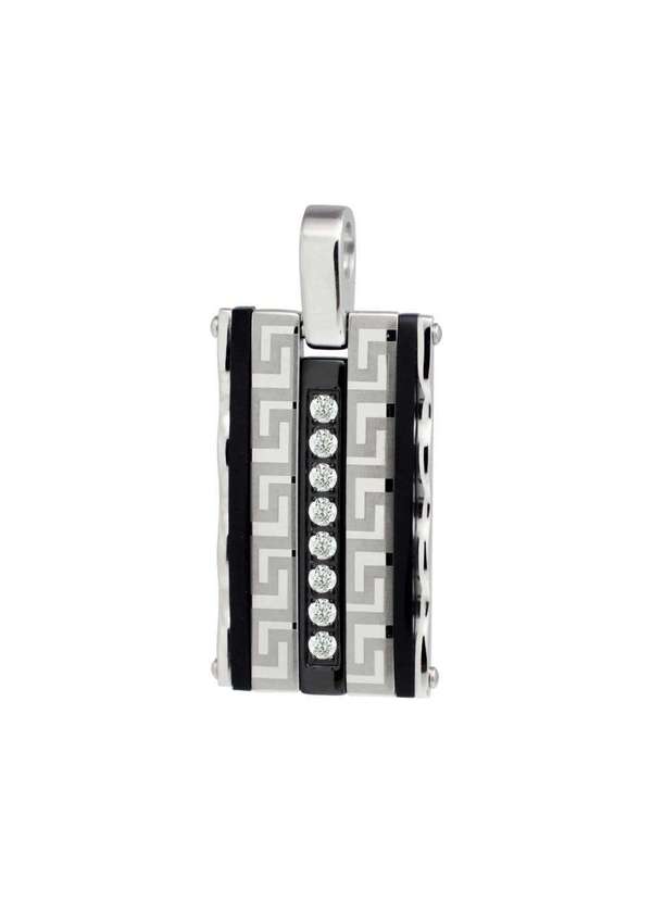 Convex - Pingente Aço Retangular Trabalho Grego Resina Preta e Pedra Prata