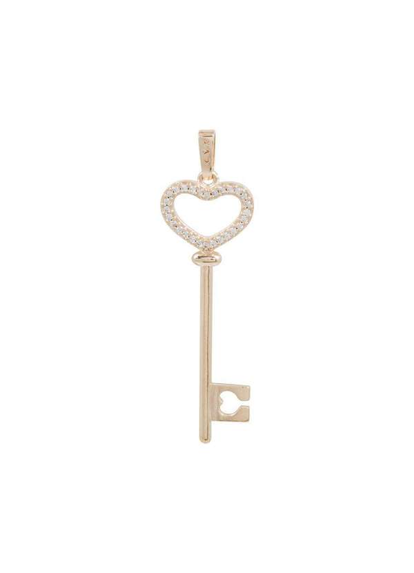 Convex - Pingente Prata c/ Ouro 18k Chave com Zircônia 40x13mm Dourado