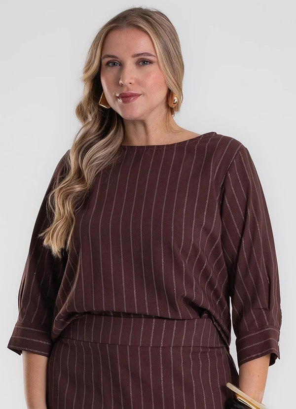 Secret Glam - Blusa Manga 3/4 Twill Plus Size Marrom