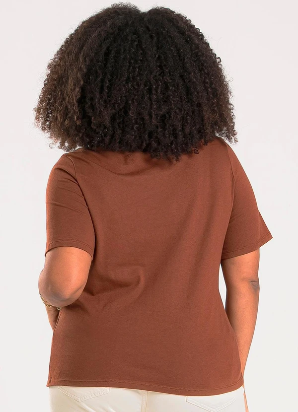 Cativa - Blusa Plus Size em Algodão Marrom Escuro