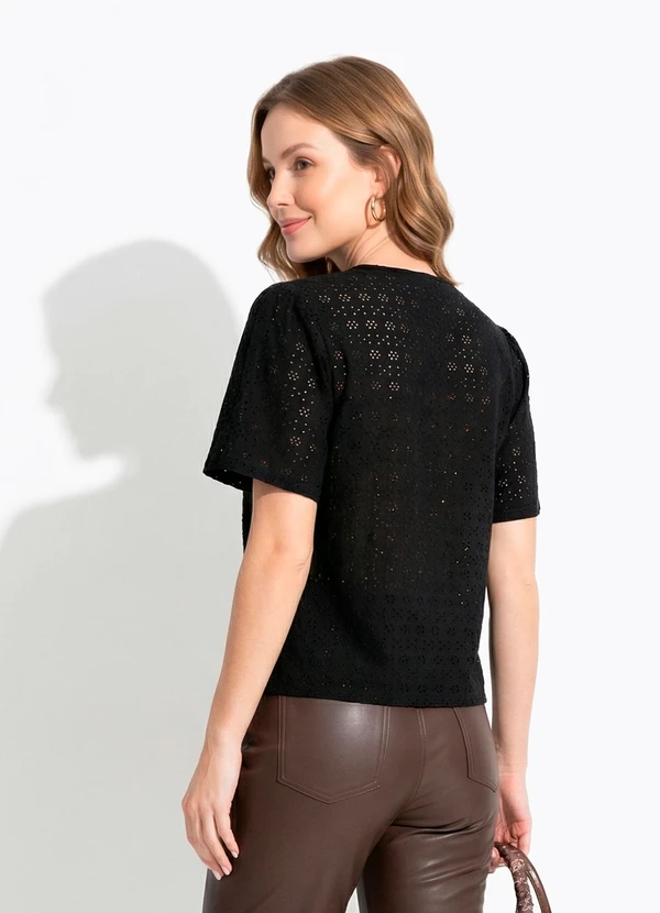 Quintess - Blusa Preta em Malha Laise