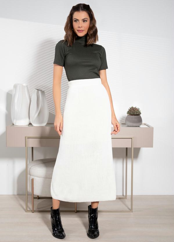 Quintess - Blusa Verde Militar Gola Alta Canelada