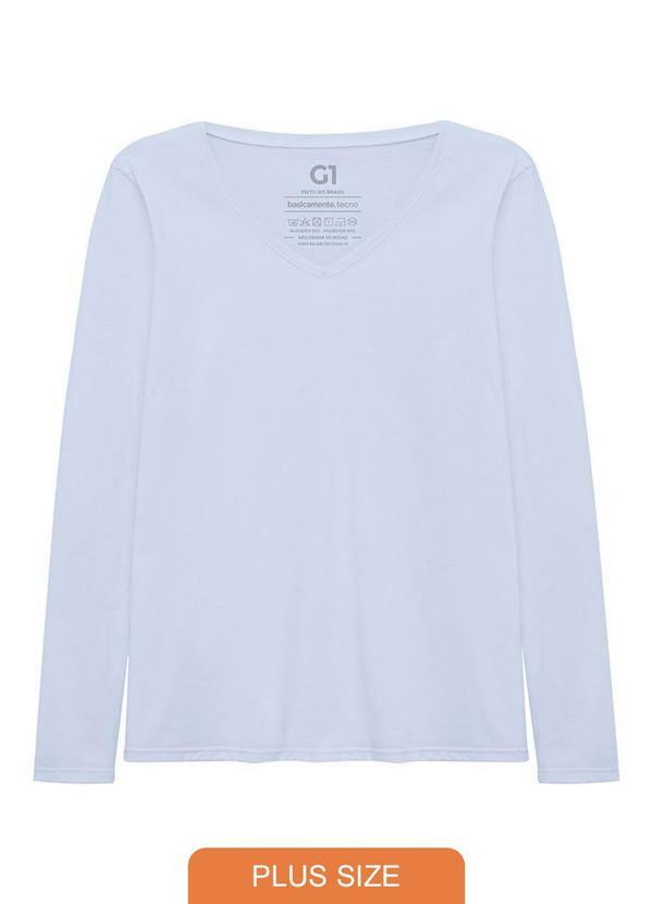 Basicamente - Camiseta Slim Gola V Manga Longa Plus Azul Boy