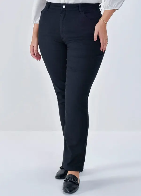 Principessa - Calça Reta Slim de Sarja Preta Oana