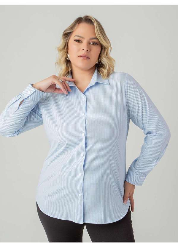 Susie Modas - Camisa Oversized Listrada Feminino Azul