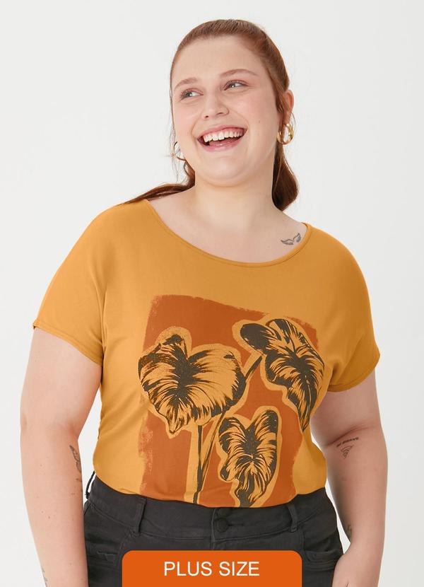 Malwee - Camiseta Folhagem Mullet Plus Amarelo Mostarda