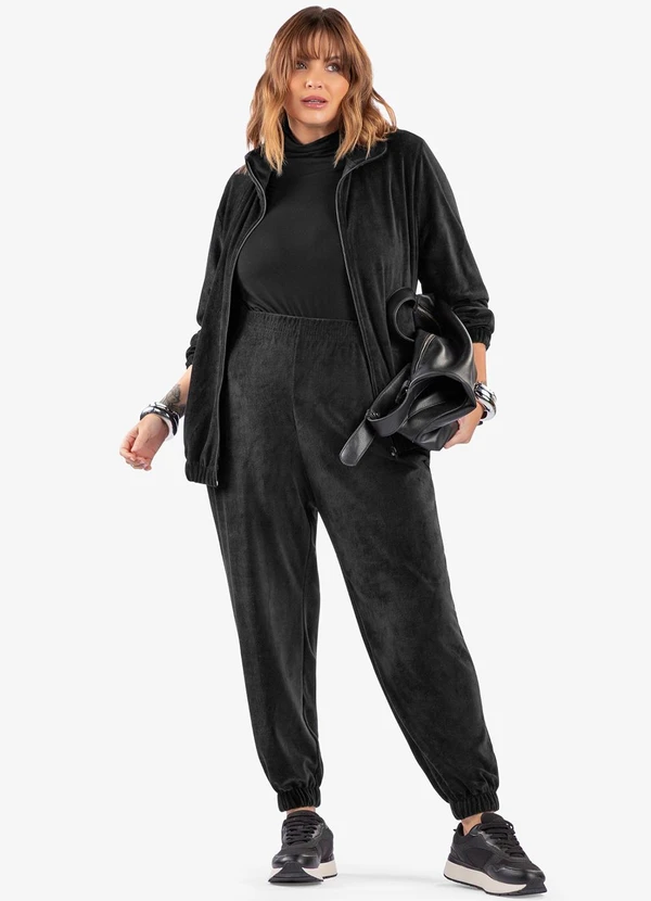 Secret Glam - Conjunto Jaqueta com Calça em Plush Preto