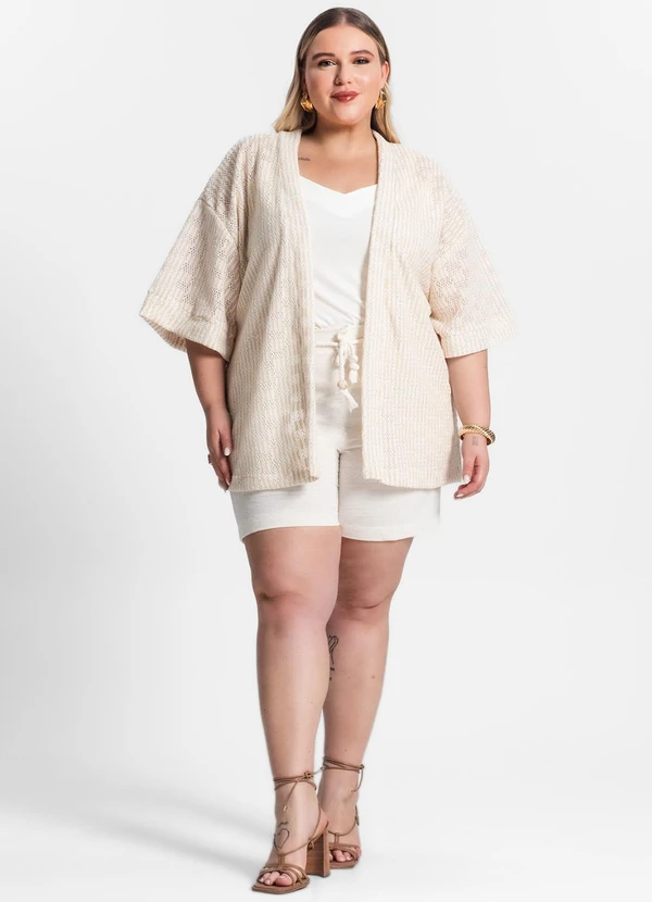 Secret Glam - Kimono Plus Size em Tricot Bege