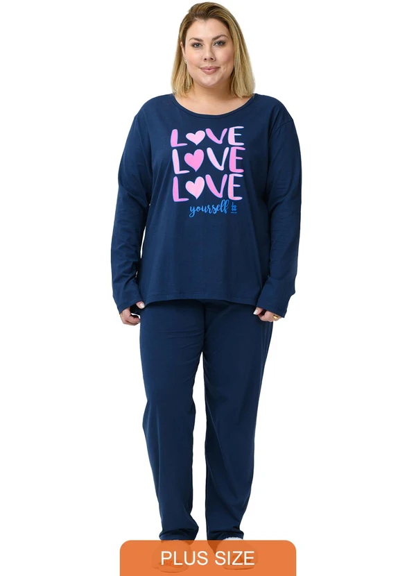 Be Blast - Pijama Inverno Plus Size de Algodão Love Azul