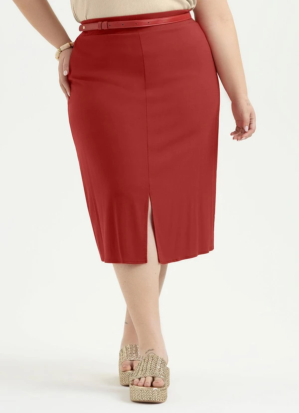 Cativa - Saia Plus Size Midi em Viscose Vermelho - variação: Vermelho