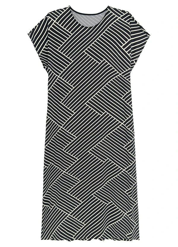Malwee - Vestido Mídi Geométrico Plus Preto