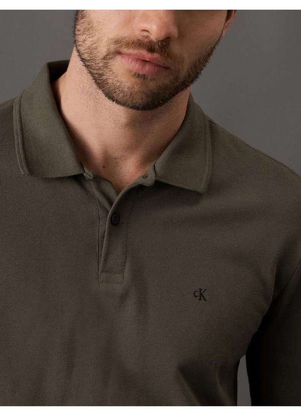 Calvin Klein Jeans - Polo Masculina Manga Longa Bordado Calvin Klein Jeans - Militar Verde