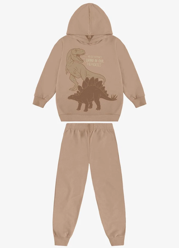 Rovi Kids - Kit Conjunto Blusão com Capuz e Calça Marrom