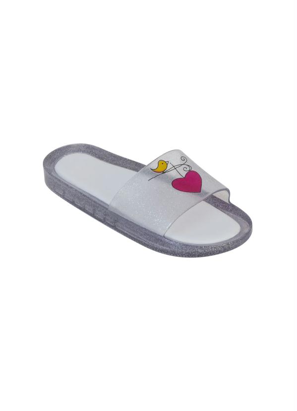 Outlet - Chinelo Slide Cristal com Estampa Pássaro