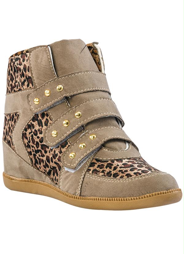 Sneaker Bege Estampa Onça, confeccionada em material sintético.