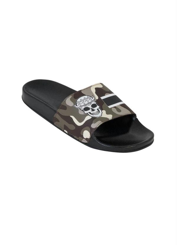 Outlet - Chinelo Slide Marrom com Estampa Camuflada