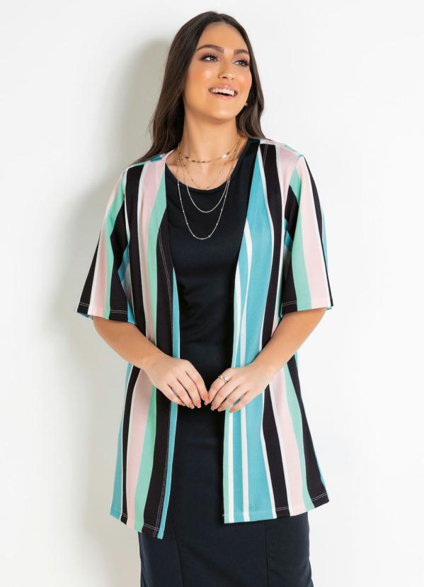 Outlet - Kimono com Mangas Evasê Listrado Moda Evangélica