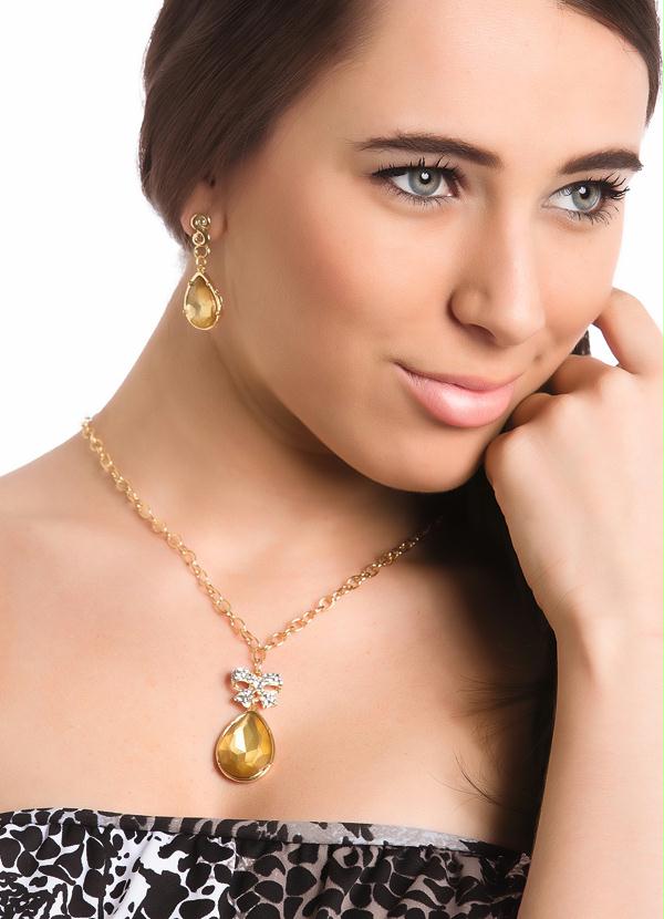 Quintess - Conjunto Brincos e Colar Dourado