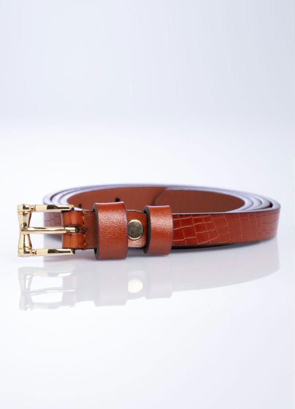 Quintess - Cinto Marrom e Dourado com Textura Croco
