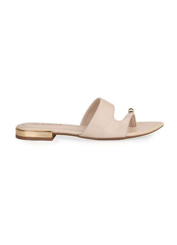 Bebecê - Rasteira Bebecê Bico Fino Salto Dourado Enfeite Anel Creme