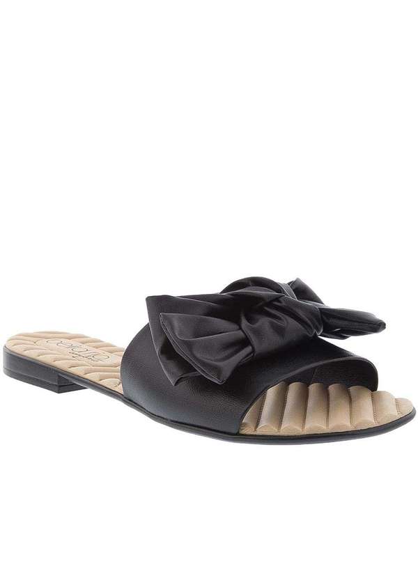 Beira Rio Conforto - Rasteira Beira Rio Tira Larga Laço Preto Preto